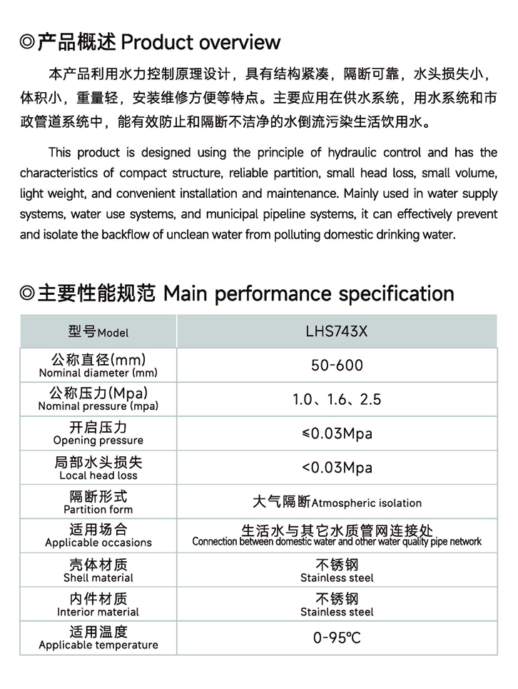 LHS743X低阻力倒流防止器