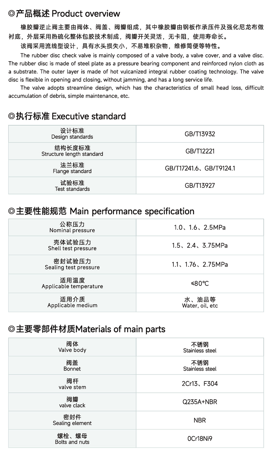 H44X不锈钢橡胶瓣止回阀