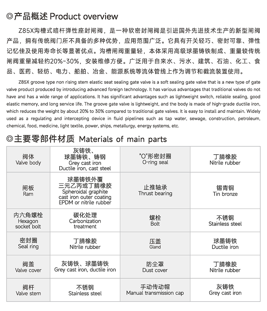 Z85X沟槽式暗杆弹性座封闸阀