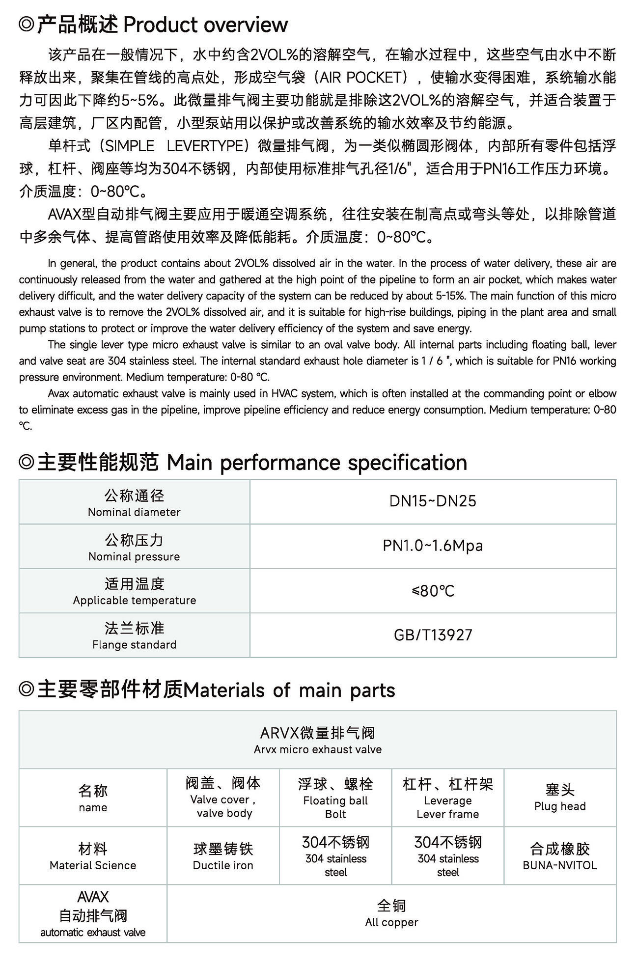 ARVXAVAX微量排气阀自动排气阀